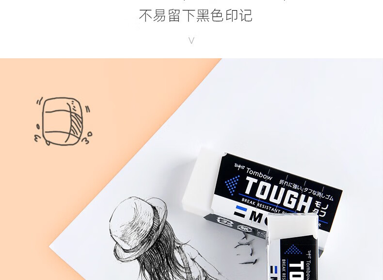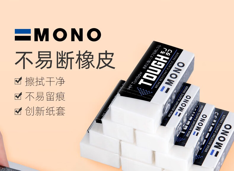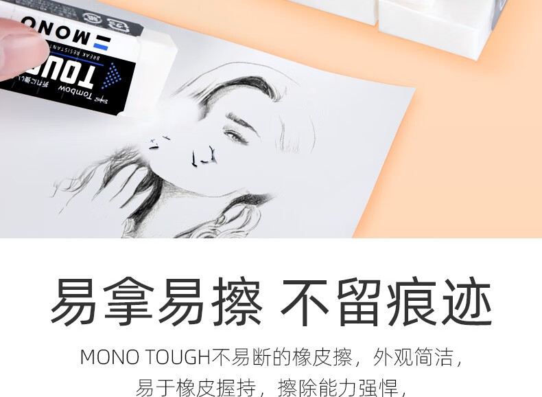 日本进口TOMBOW蜻蜓mono铅笔橡皮擦白色柔软橡皮砖小巧型学生考试